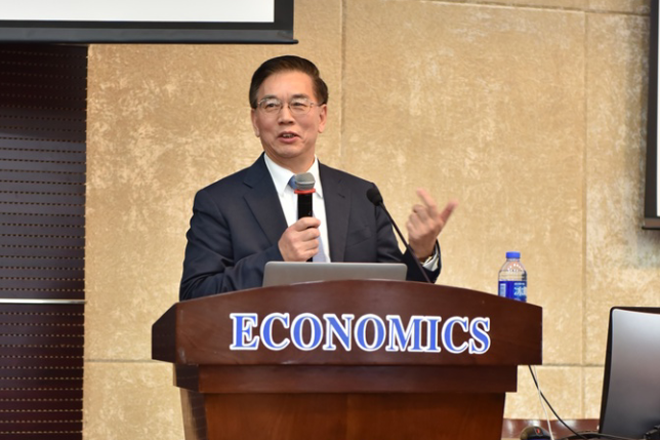 讲座由厦门大学特聘教授、经济学院副院长朱孟楠主持,美国康奈尔大学与厦门大学教授洪永淼为林建海秘书长颁授南强学术讲座纪念牌、以及厦门大学经济学院与王亚南经济研究院兼职教授荣誉证书、富邦金融与产业论坛讲座纪念牌。